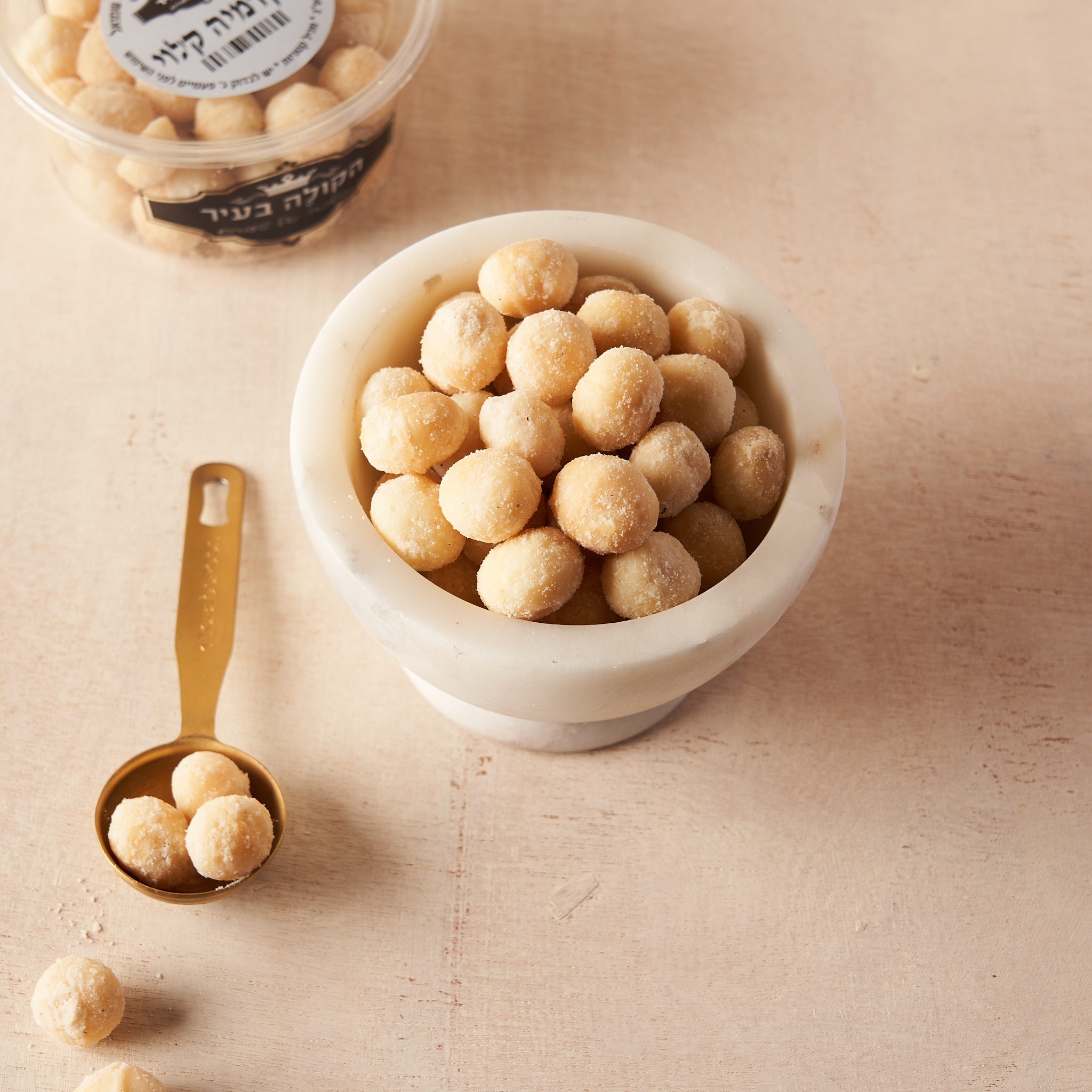 אגוזי מקדמיה קלויים של הקולה בעיר. אם יש אגוזי על, אגוזי המקדמיה ביניהם, הם מלאים בערכים טובים לגוף, עשירים בחלבון, חומצות שומן בריאות ומינרלים כמו מגנזיום, זרחן ופוטסיום. אגוזי המקדמיה מגיעים מצמח האגוז הגדל בעיקר בברזיל וקולומביה. כיף לאכול אותם כפי שהם – נשנוש בין הארוחות או להוסיף אותם לשלל מאפים וקינוחים. אגוזי המקדמיה הם גם מקור לשמן אגוז המשמש במטבח במגוון רחב של מנות.