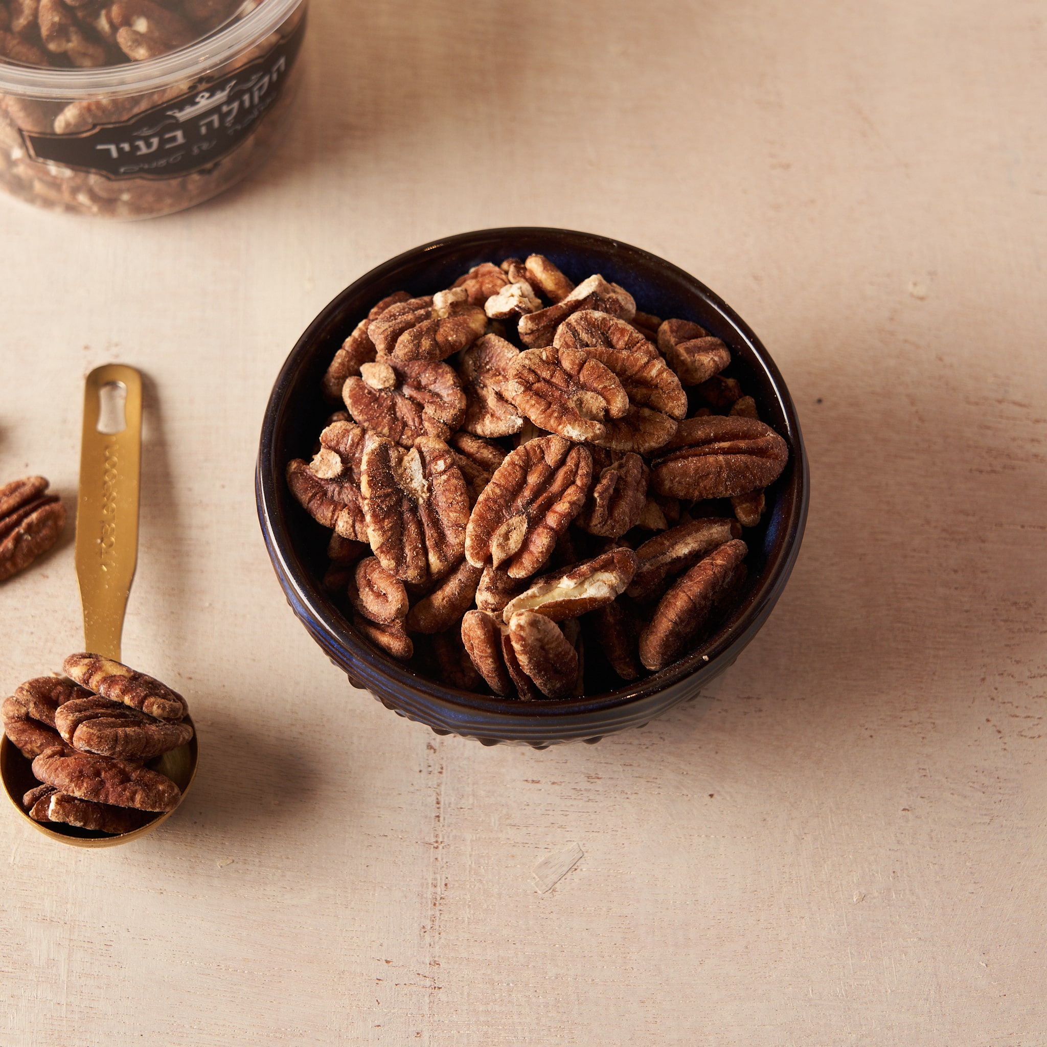 פקאן קלוי של הקולה בעיר. אגוז הפקאן הוא אגוז מתוק ועשיר בערך תזונתי, המצוי בדרום אמריקה ובארצות הברית. הוא נחשב למקור עשיר של חלבון, כולסטרול בריא וחומצות שומן טובות, וגם מספק אבץ, מגנזיום, וויטמין E ומינרלים נוספים. לאגוזי הפקאן טעם מתקתק עם מרקם רך ושומני.